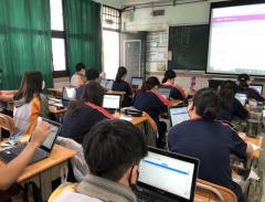 學生以AILEAD365線上教學平台進行數學測驗。(美崙國中)