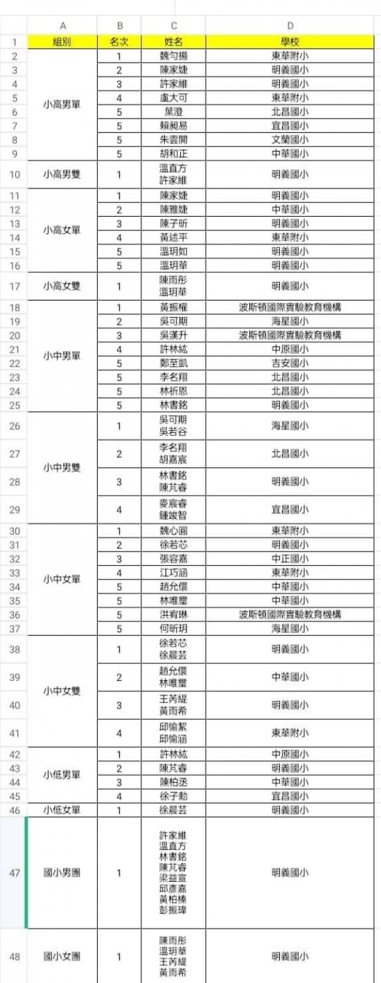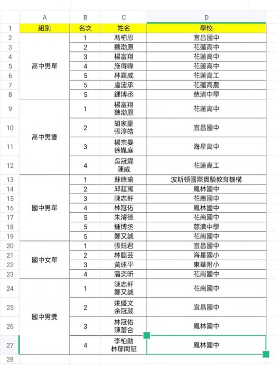 112年花蓮縣縣長盃羽球錦標賽-成績公告