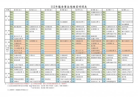 2023花蓮慶端午、鯉魚展競技.龍舟競渡嘉年華-練習時間表