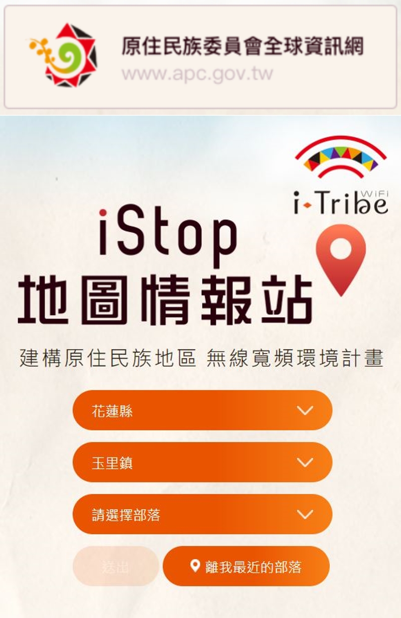 iStop地圖情報站之網頁服務係為推廣原住民族委員會「i-Tribe愛部落無線寬頻」,使用者可使用iStop地圖情報站之地圖資訊找到愛部落無線WiFi站點位置,提升部落民眾對於無線網路的使用。