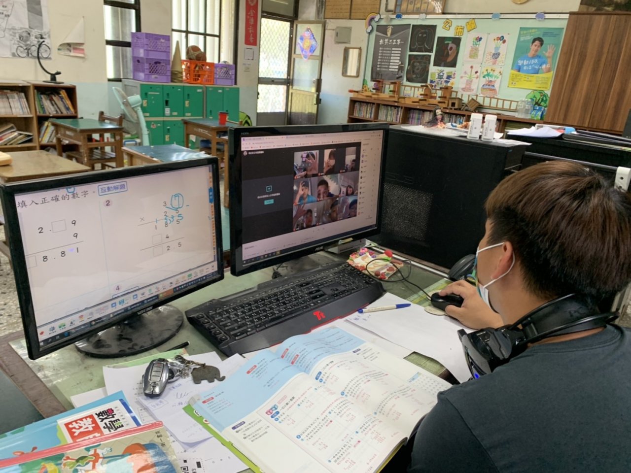 西林國小持續維持居家教學量能的同時,學校方面也做好量體溫戴口罩、管制入校人員等防疫措施,一刻都不敢馬虎,希望在防堵疫情升溫的同時,也能維護學生的教學權益。