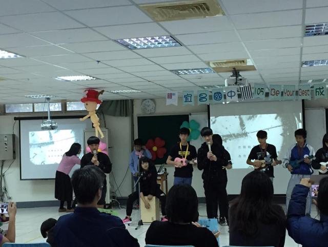 時間:105年12月14日 下午13:30~3:10 地點:活動中心 表演人員:Be Your Best班同學+宜中熱舞社+鳳林國中社團 表演節目:烏克麗麗+街舞+熱音+鬆餅烘焙 受邀人員:師長+同學