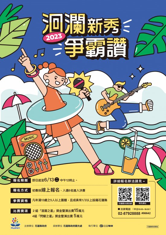 請貴單位協助張貼海報、更新網頁最新訊息、發布FB粉絲專頁宣傳「2023洄瀾新秀爭霸讚」徵選活動,宣傳期間為即日起至6月13日中午12時止,敬請宣傳週知。
