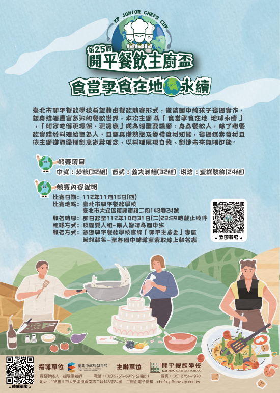 | 四、 | 主辦單位:臺北市開平餐飲學校 |