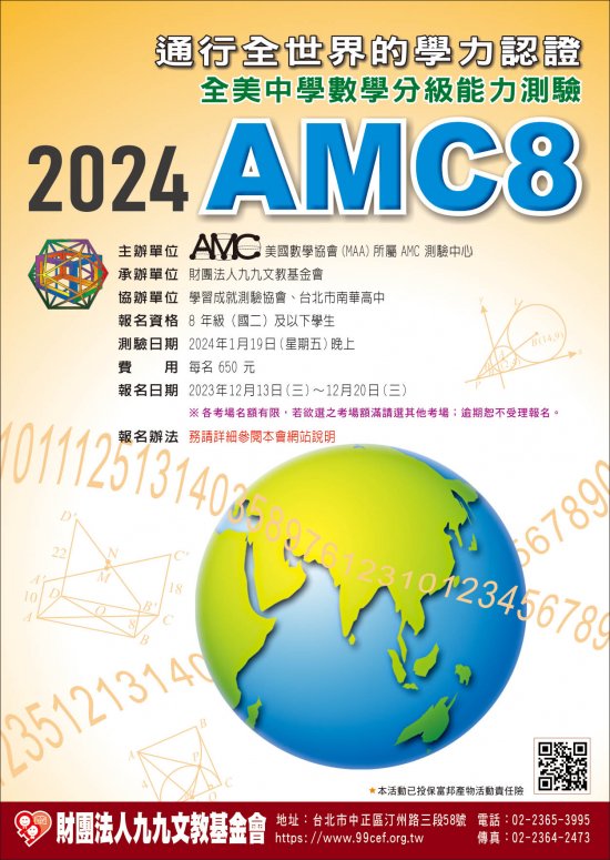 「2024年全美中學數學分級能力測驗AMC8」台灣區測驗