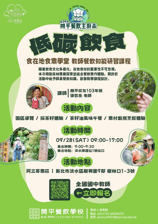 轉知開平餐飲學校辦理「開平餐飲學校113學年度國中教師技職教育研習_食在地食農學堂-教師餐飲知能研習課程」