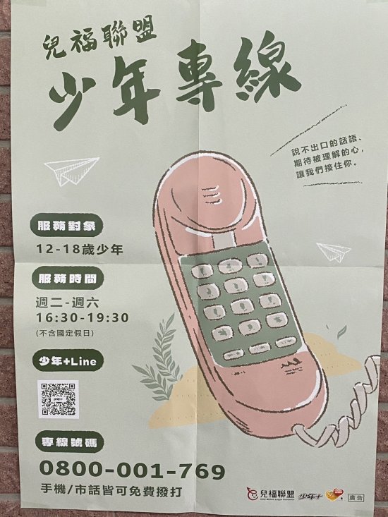 專線服務異動最新消息請見粉絲專頁:https://www.facebook.com/youth1769