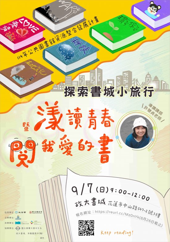 | (一) | 辦理日期及地點:114年9月7日(日)上午9時至12時假政大書城(花蓮市中山路547-2號3樓)辦理。 |