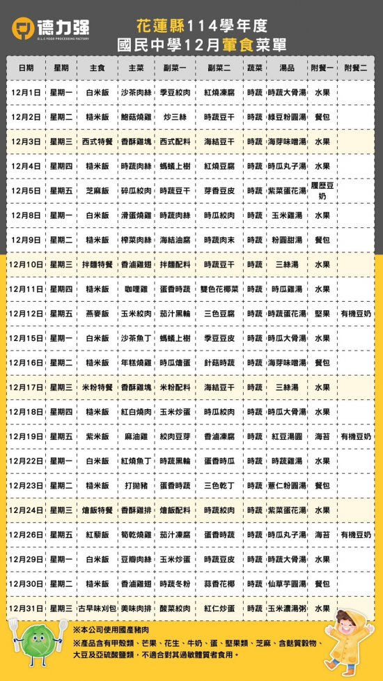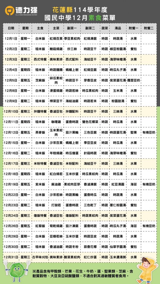 廠商通知:12月有機豆奶供應日為12/12、12/19、12/26。