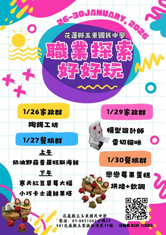 轉知本縣玉東職業試探與體驗示範中心114學年度第一學期寒假營課程相關資訊