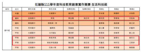 花蓮縣 111學年度科技教育創意實作競賽名次公告![]()