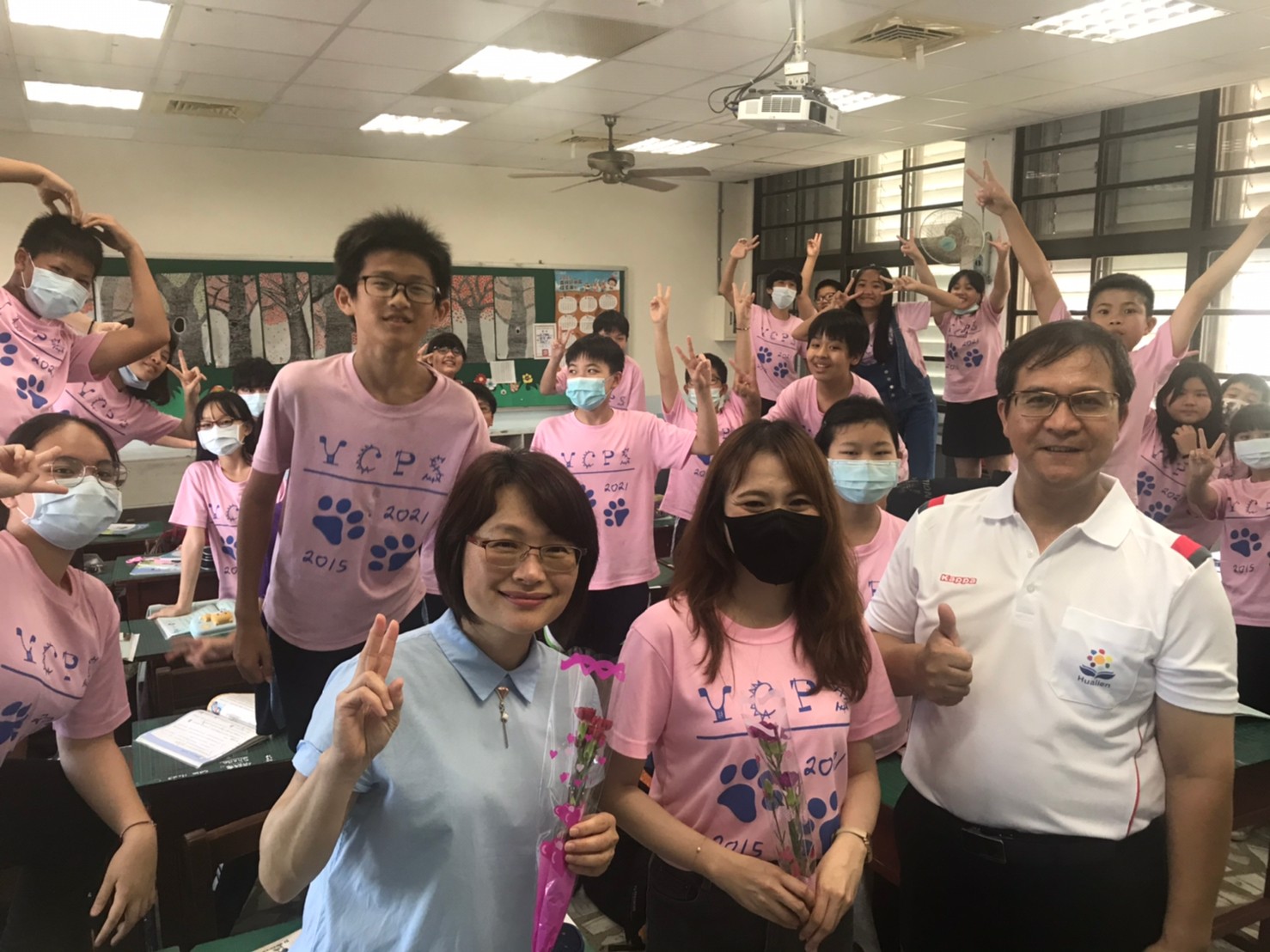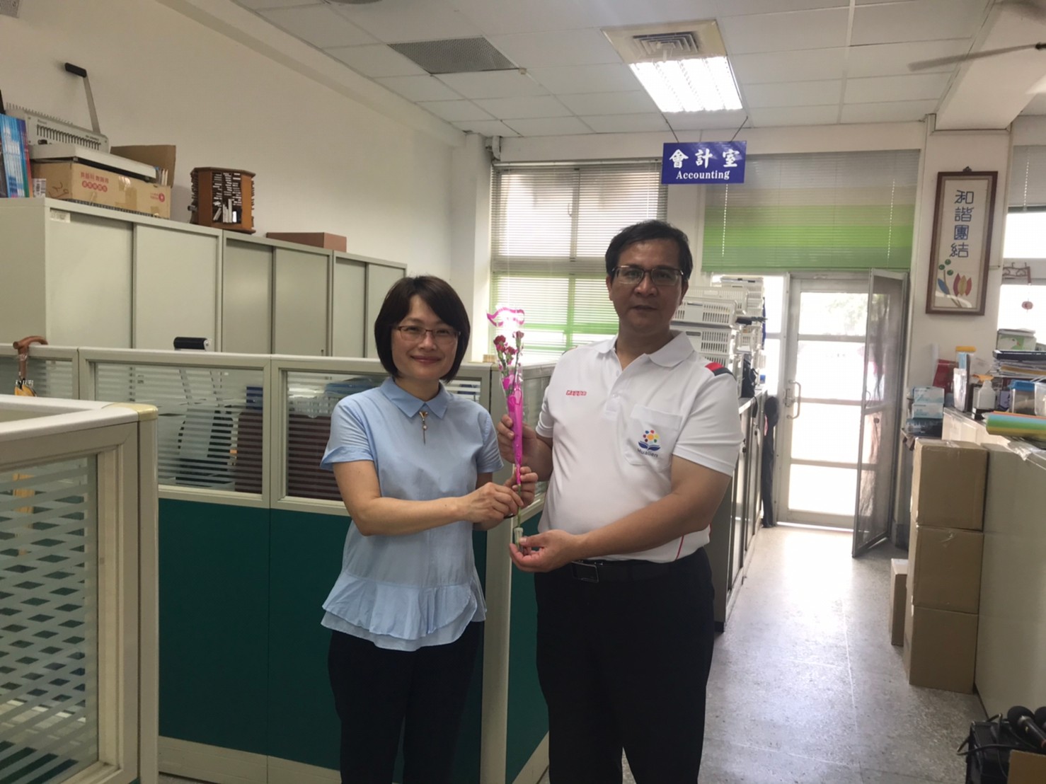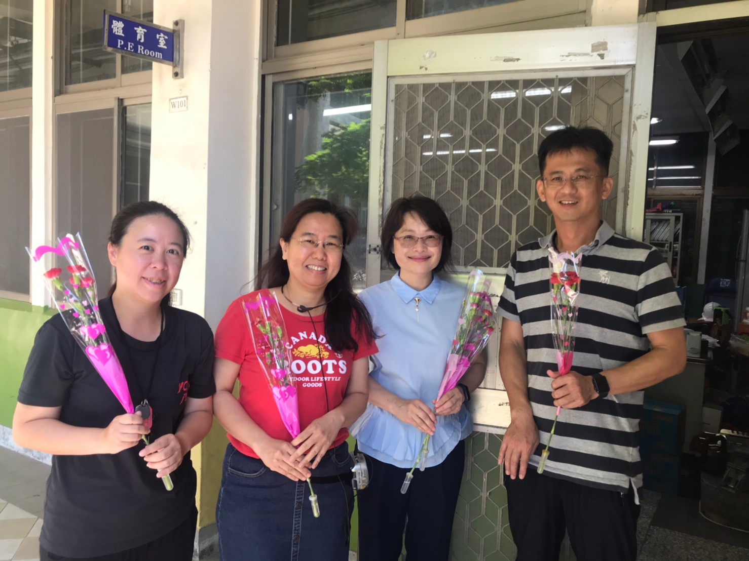 家長會蔡雲卿會長偕同校長至各教室獻上一束康乃馨祝福.