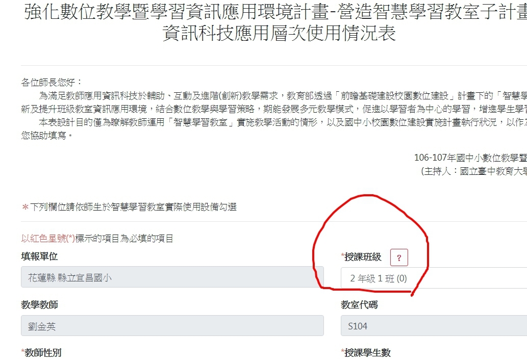 提醒進入後要勾選班級,不然系統會顯示某些班級尚未填答。