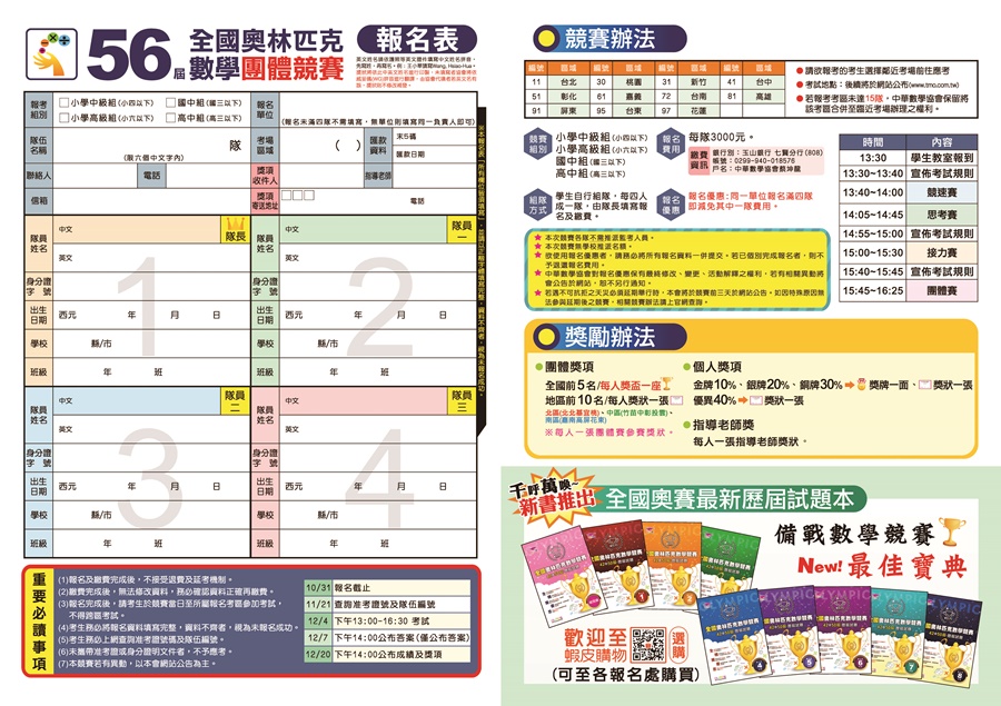 「第 56 屆全國奧林匹克數學團體競賽」跟「2023年臺灣區小學數學奧林匹亞競賽簡章」