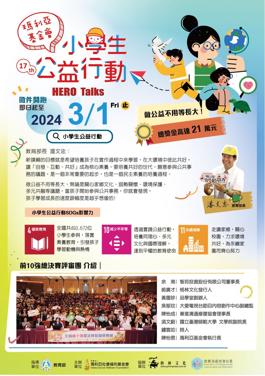 [即日起受理報名]第 17 屆小學生公益行動 HERO Talks|成為改變世界的小英雄
