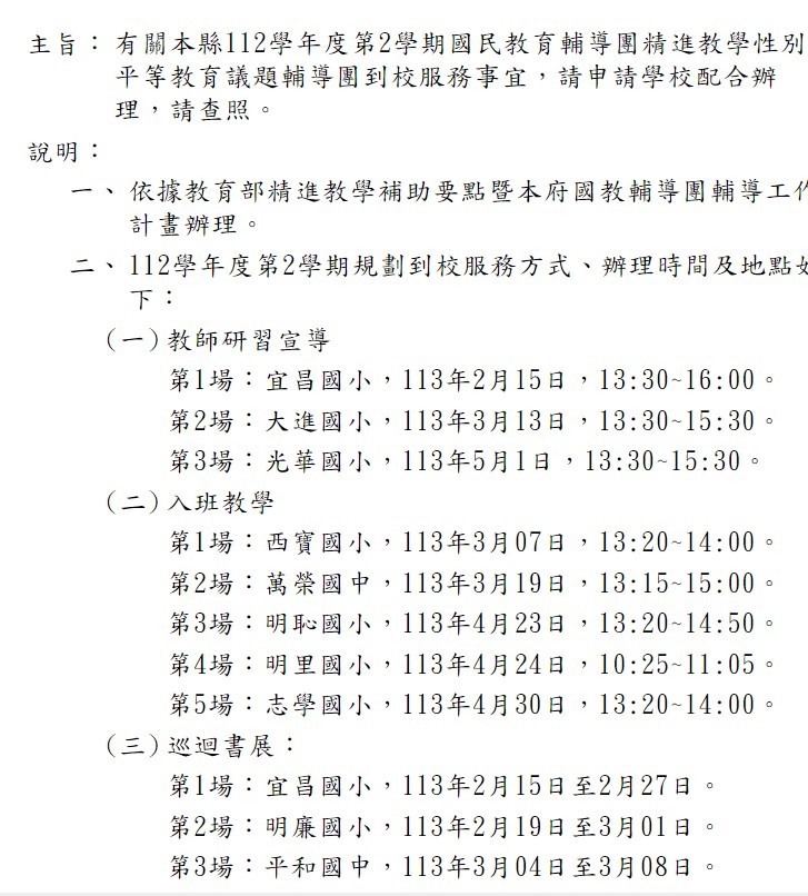 112 學年度第 2 學期精進教學性別平等教育議題輔導團教師研習宣導