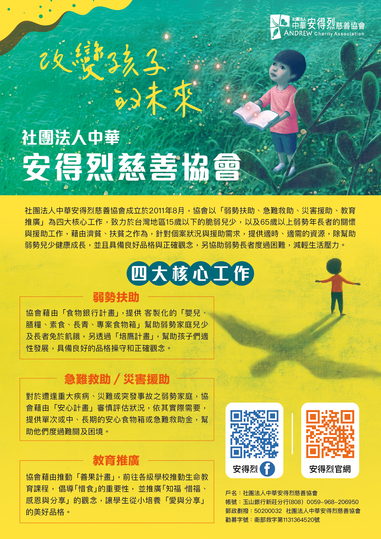 轉知中華安得烈慈善協會提供「膳糧食物箱」供應計畫,請各班視弱勢學生需求協助提出申請,