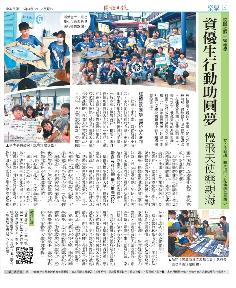 宜昌國小資優班師生行動助圓夢-慢飛天使樂親海