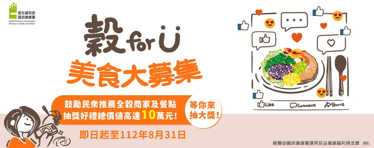 主旨: | 轉知衛生福利部國民健康署於112年8月1日至8月31日辦理「穀 for U 美食大募集」活動,請各校廣為周知,請查照。 |