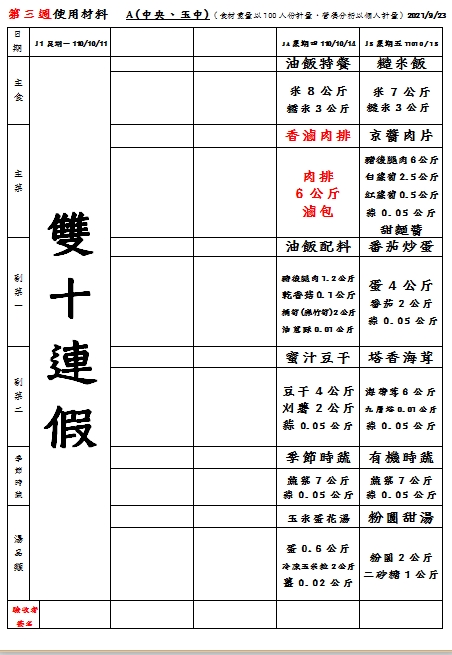 因颱風影響,10/14、10/15午餐食材異動!