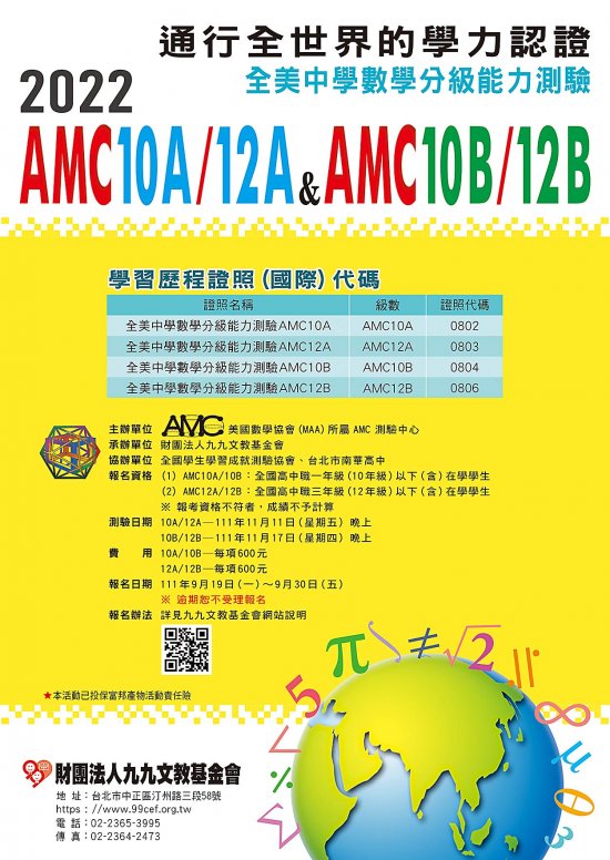 AMC12A/12B:全國高中職三年級(12年級)以下(含)在學學生