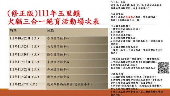 | (一) | 電洽玉里鎮公所王獸醫(03-8883166#151) |