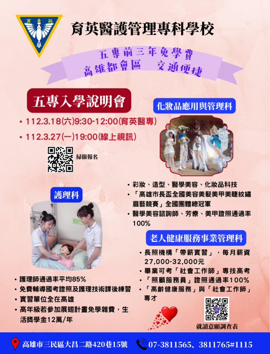 1. 112年3月18日(星期六)9:30-12:00(育英醫專)。