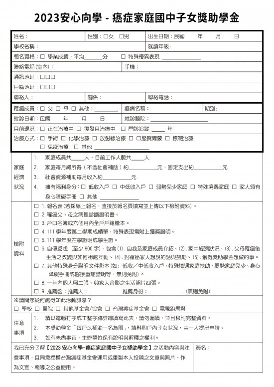 父或母罹患癌症且目前治療中或完成治療2年內。