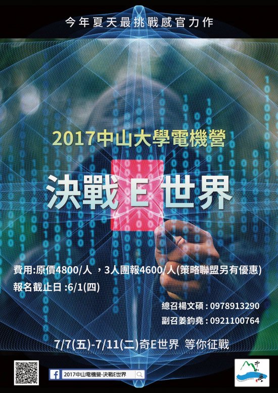 | (二) | 臉書粉絲專頁:請google搜尋「2017中山電機營-決戰E世界」。 |