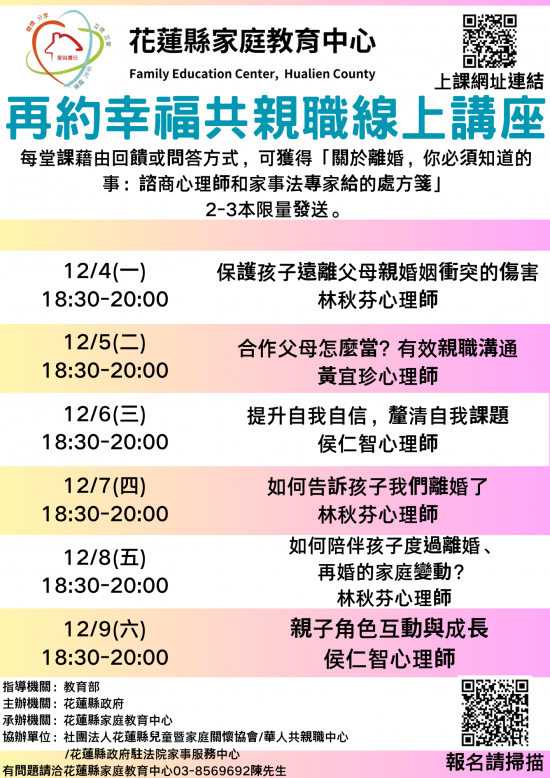 花蓮縣家庭教育中心辦理「再約幸福共親職線上講座」