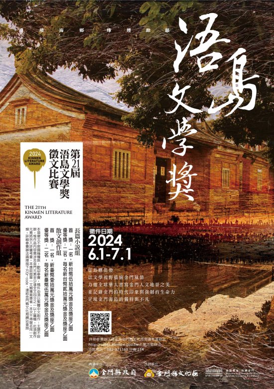 金門縣文化局舉辦「2024第21屆浯島文學獎」徵文比賽,歡迎大眾踴躍參加。