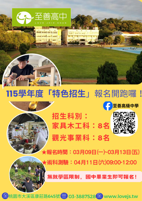 於彈跳視窗觀看:115 特色招生簡章_桃園大溪至善高中宣傳海報.png