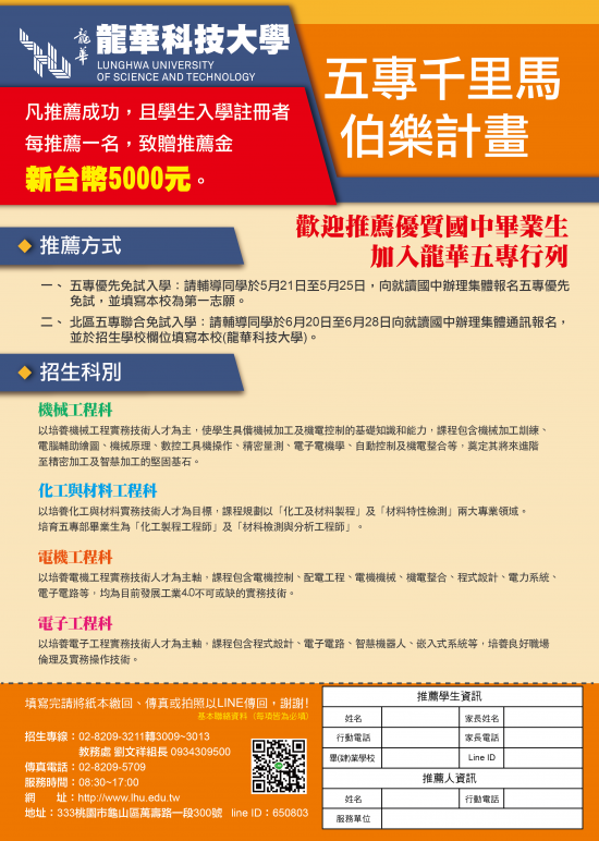 請傳真報名或透過LINE報名,報名表、議程及五專DM如附件。