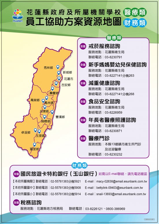轉知花蓮縣政府員工協助方案資源地圖4張及資源一覽表1份