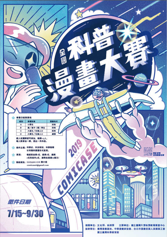 國立臺灣大學科學教育發展中心辦理「2019全國科普漫畫大賽」,自108年7月15日(星期一)開始報名。