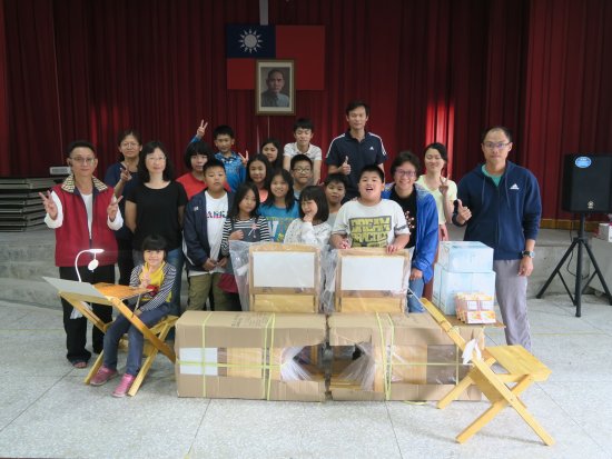 108.03.22歡喜布施行腳站 帶來了14張書桌和6盞檯燈 送給靜浦的孩子