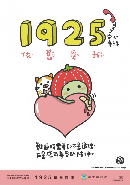 衛生福利部已設置安心專線,號碼改為1925(諧音:依舊愛我),提供全年無休,24小時免費心理諮詢服務,處理全國民眾情緒困擾、心理壓力等議題。為提升安心專線服務效能,自本(108)年7月1日起安心專線改號為1925,原號碼0800-788-995預計本年12月20日停止服務。