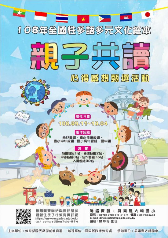 (一) 徵件主題:多元文化繪本或相關書籍親子共讀心得感想。心得內容:凡多元文化繪本或相關書籍,包含各國人文、歷史、地理及風俗民情等內容皆可。