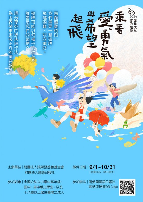 本社主辦「2024讓我成為你的翅膀──乘著愛、勇氣與希望起飛」徵件活動,海報QR Code更正。