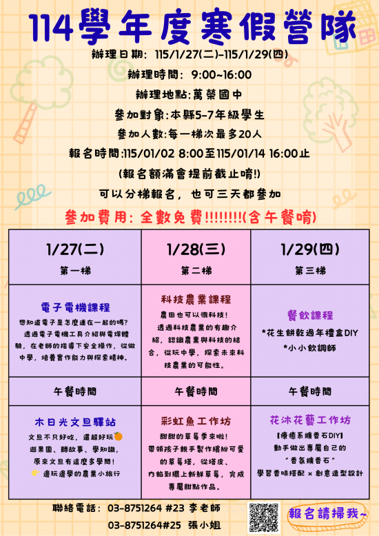 一、 營隊時間:115/1/27(二)-115/1/29(四)