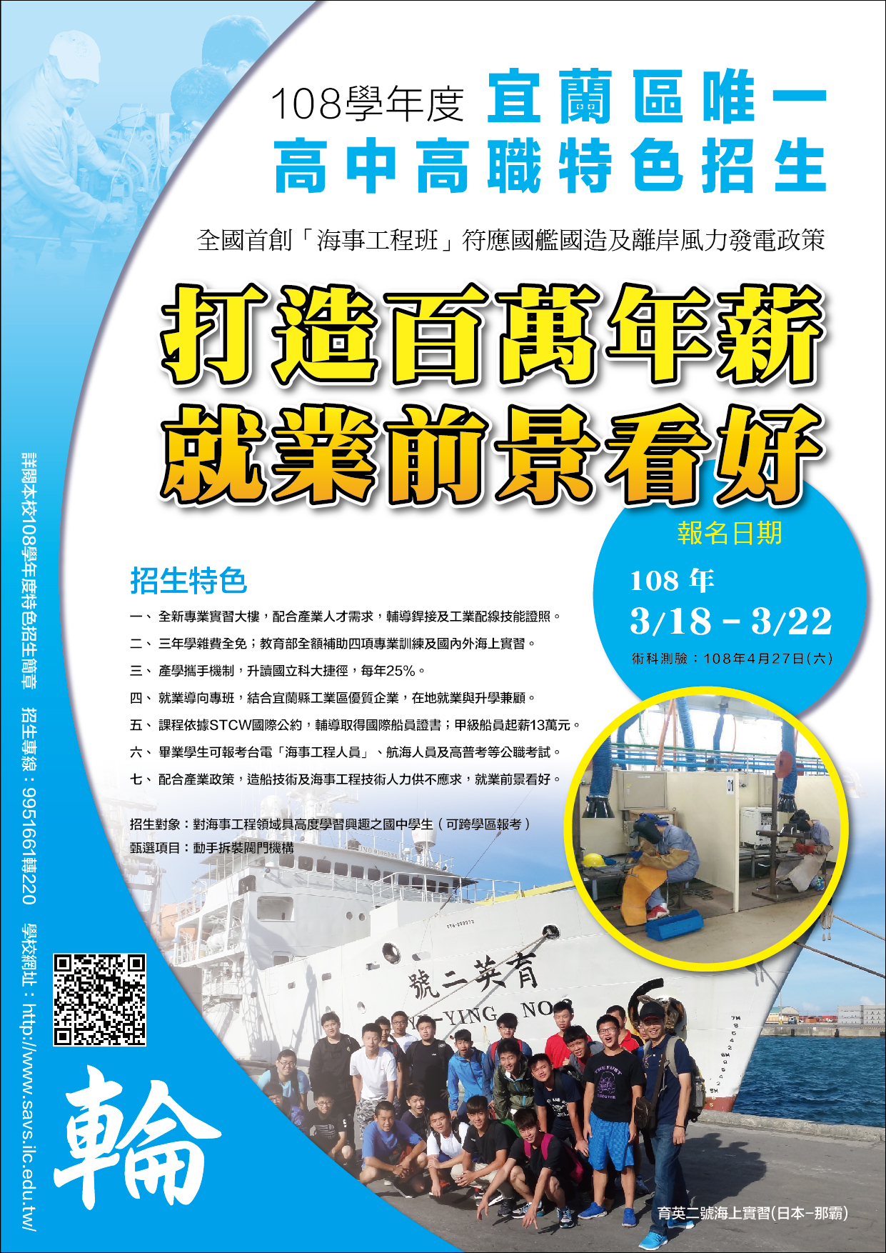 蘇澳海事 108 學年度特色招生專業群科甄選入學招生相關訊息