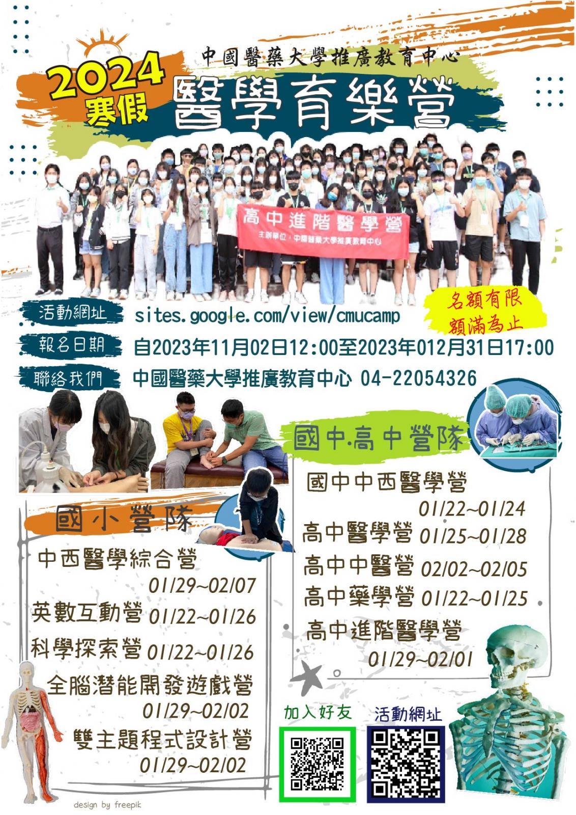轉知中國醫藥大學113年1月22日到113年2月7日寒假期間辦理『高中、國中、國小醫學營及各類主題營隊』