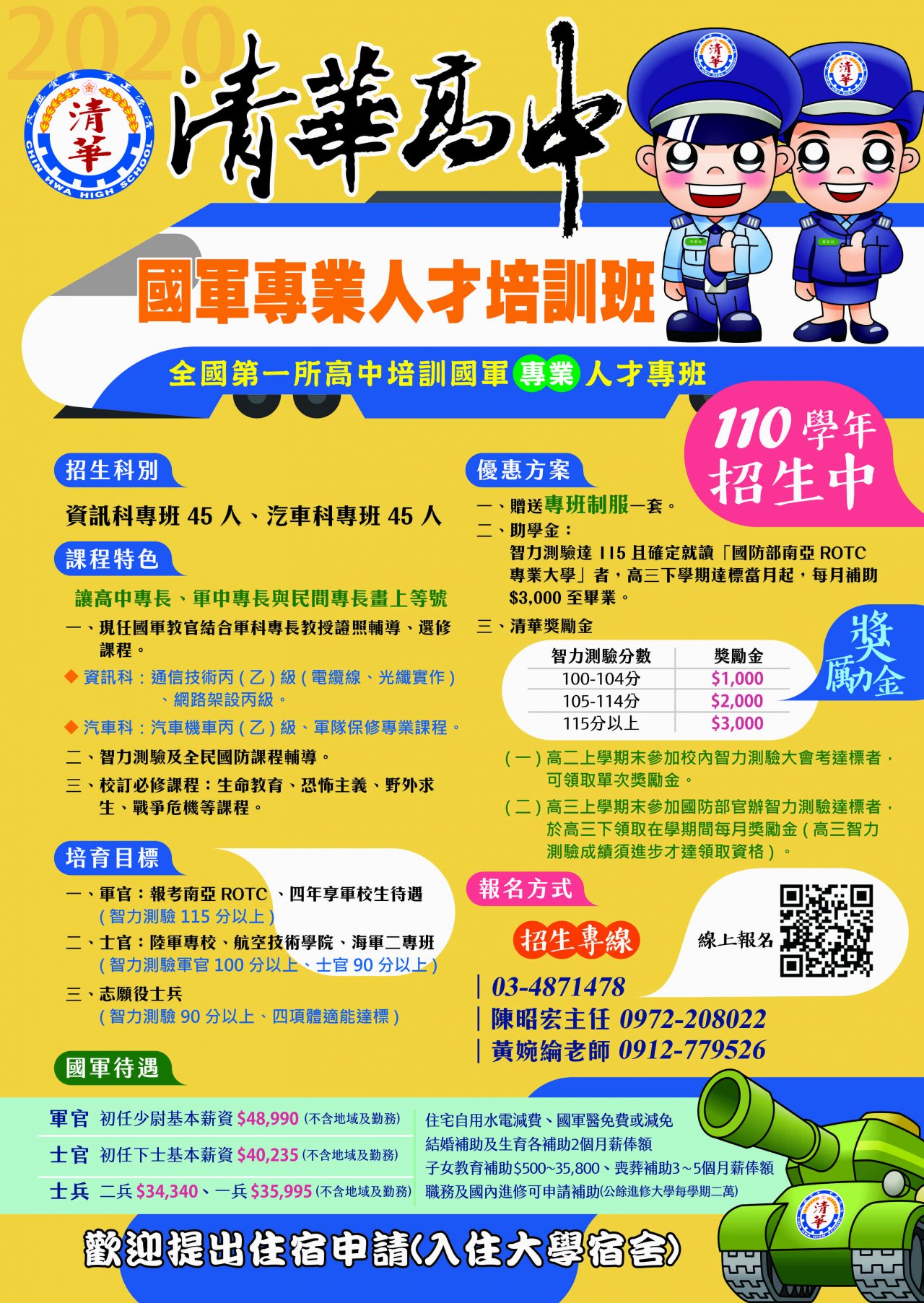 五、隨函檢附清華高中國軍專業人才培訓專班簡章、報名表(附 件一)、文宣(附件二)及宣導調查表(附件三)一份。